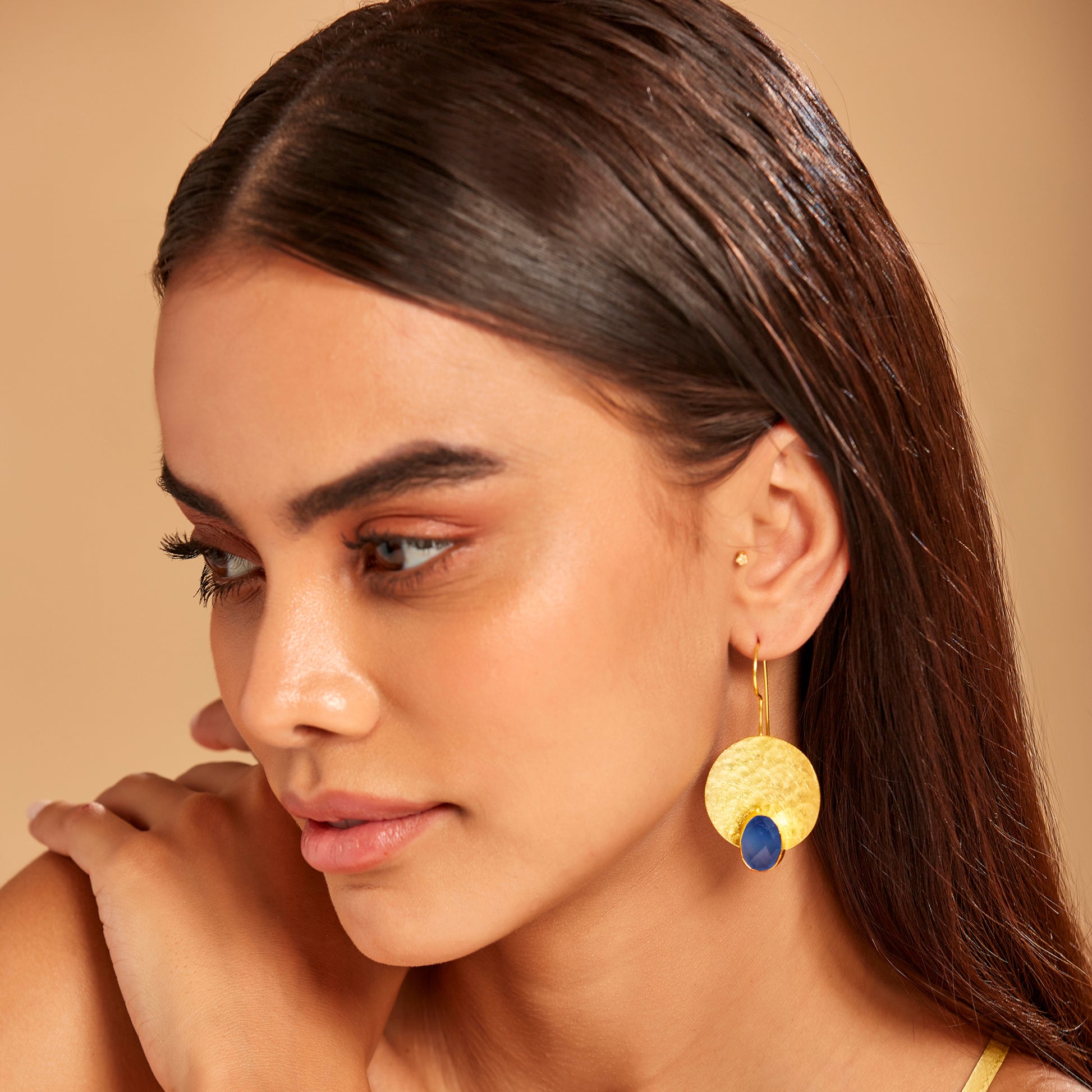 Adorn your ensemble with these spectacular ellipse earrings, flaunting magnificent Blue Chalcedony gems.