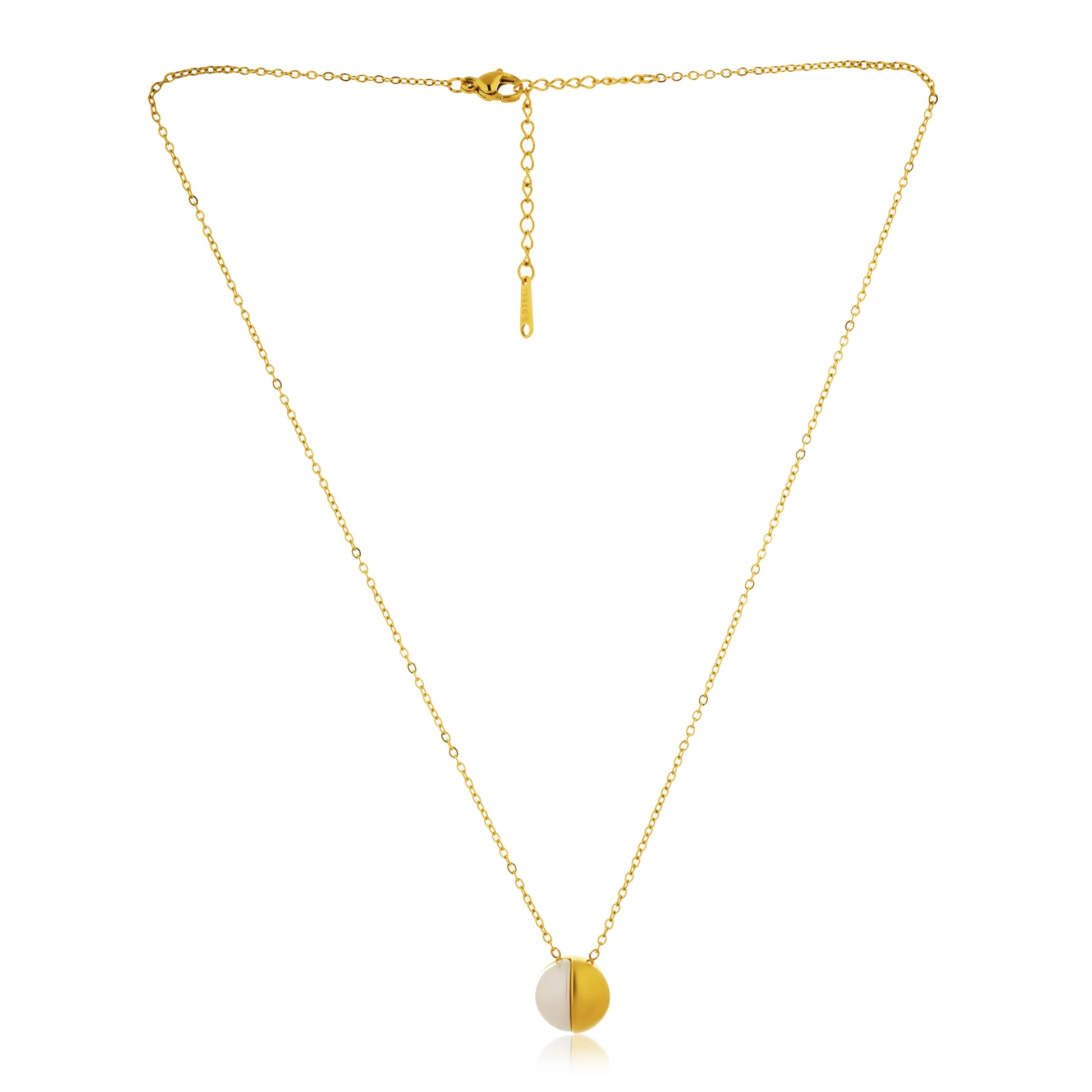 Introducing the exquisite maya goldstone necklace, crafted with durable stainless steel and adorned with 24K gold plating, and showcasing a stunning moonstone.