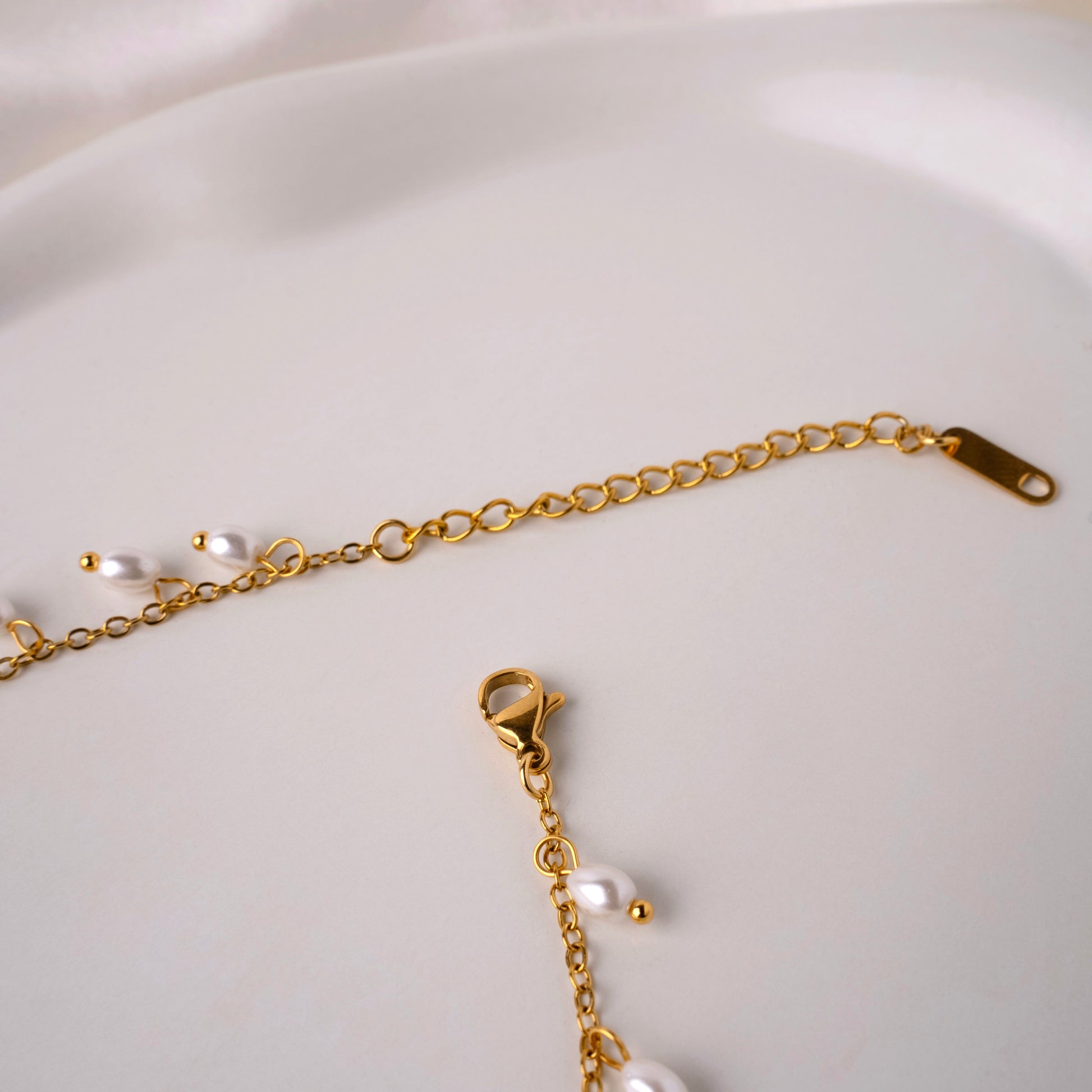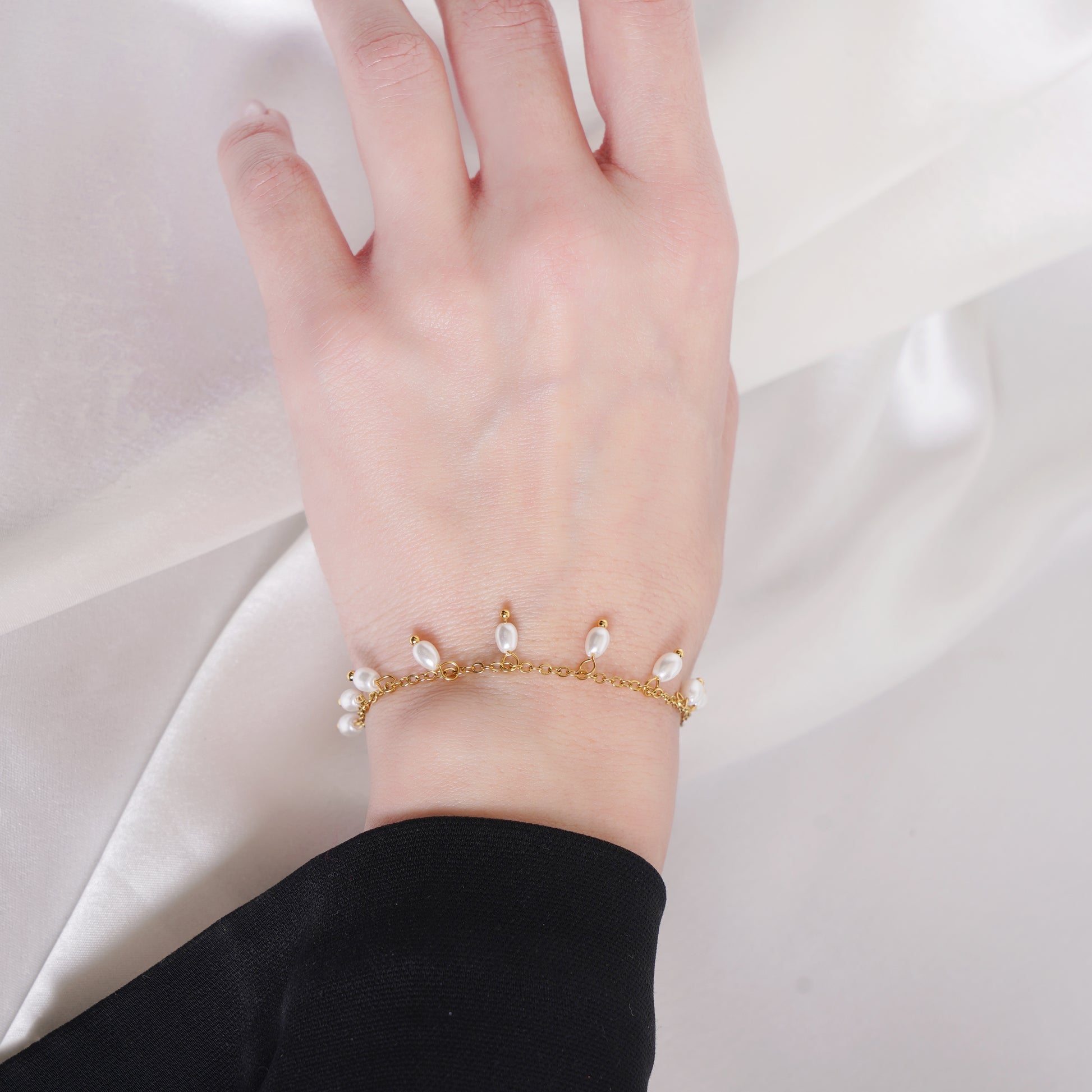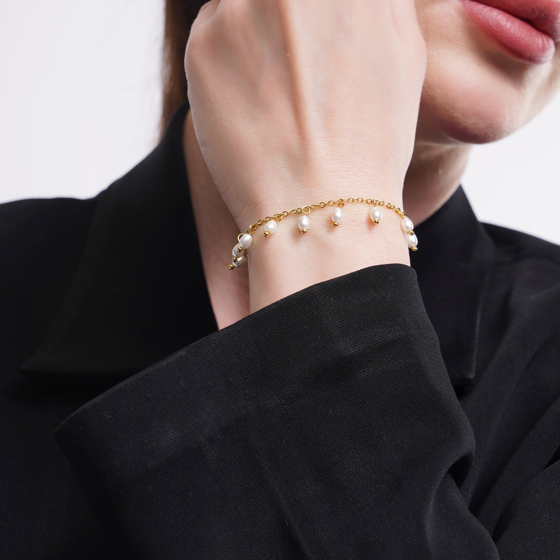 Elevate your accessory game with the Opulent Pearl Chain Bracelet, a stunning blend of elegance and sophistication. This exquisite piece features a luxurious gold chain intertwined with lustrous pearls, creating a timeless look that complements any outfit. Whether you're dressing up for a special occasion or adding a touch of glamour to your everyday wear, this bracelet is the perfect choice.
