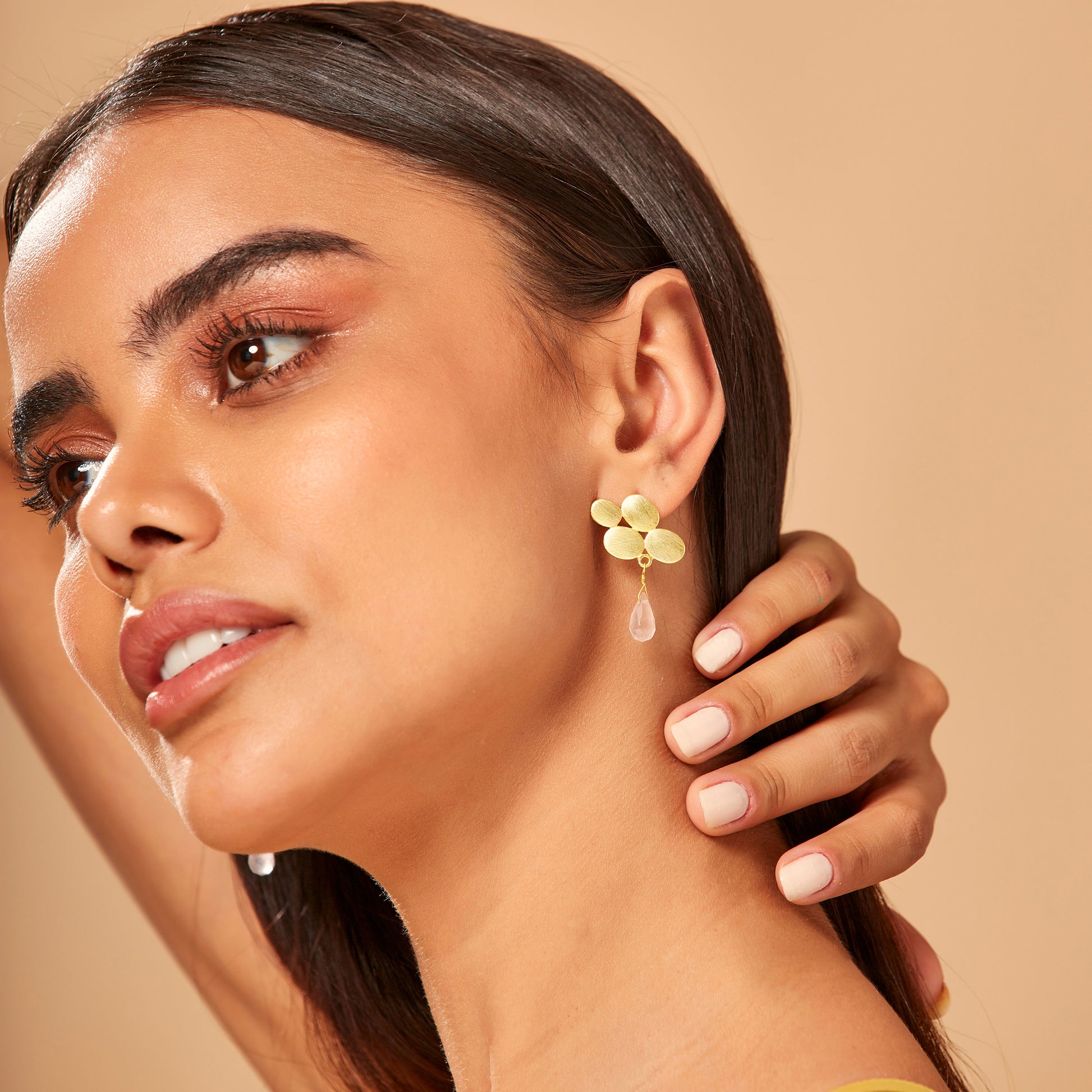 Elevate your style with a dash of delicate cuteness! Our Bubble Plop Earrings bring the bling with Rose Quartz stones in 18K Gold Plating.