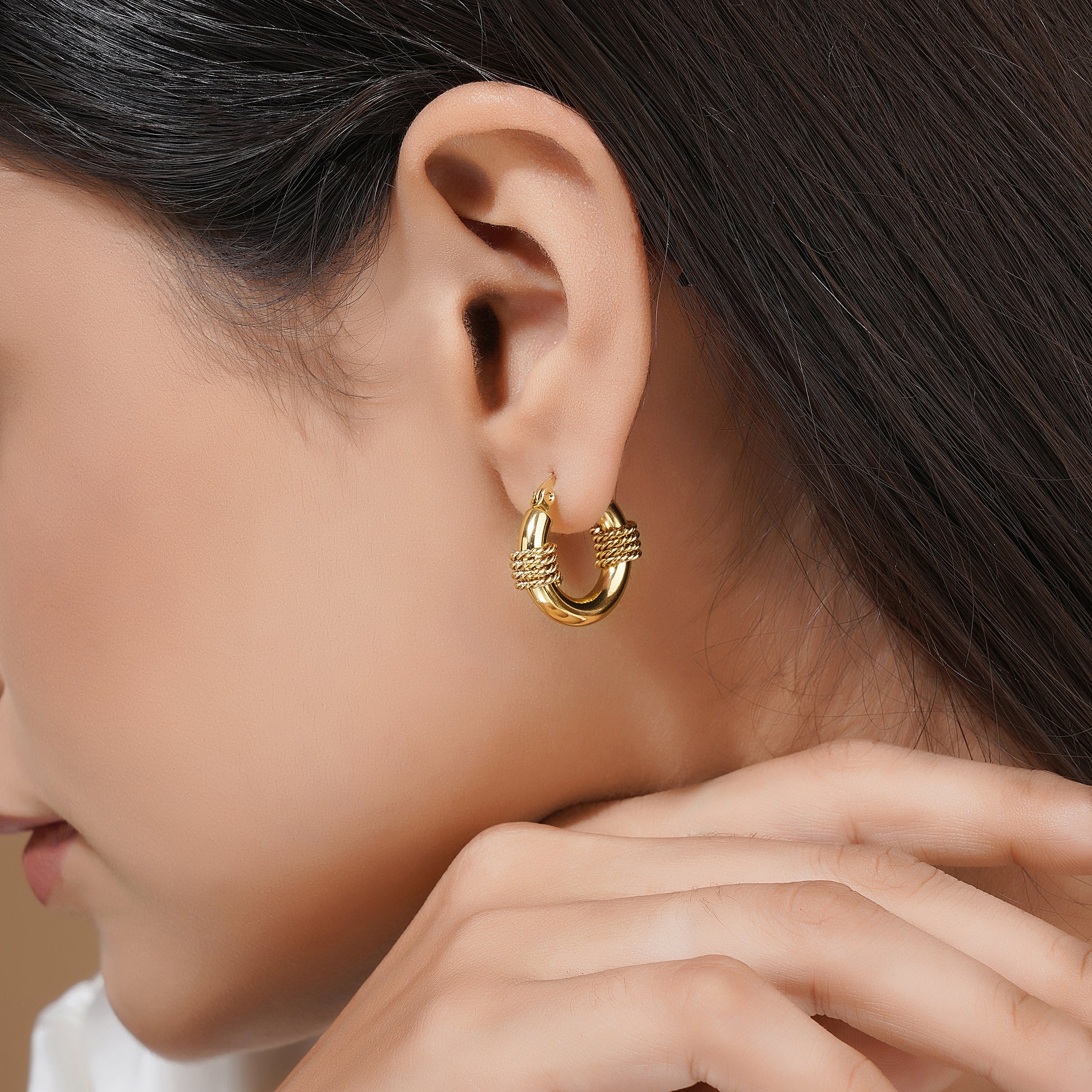 Upgrade your earrings collection with these durable and stylish toronto hoops. Made from stainless steel with luxurious 24K Gold Plating, these earrings are a must-have accessory.