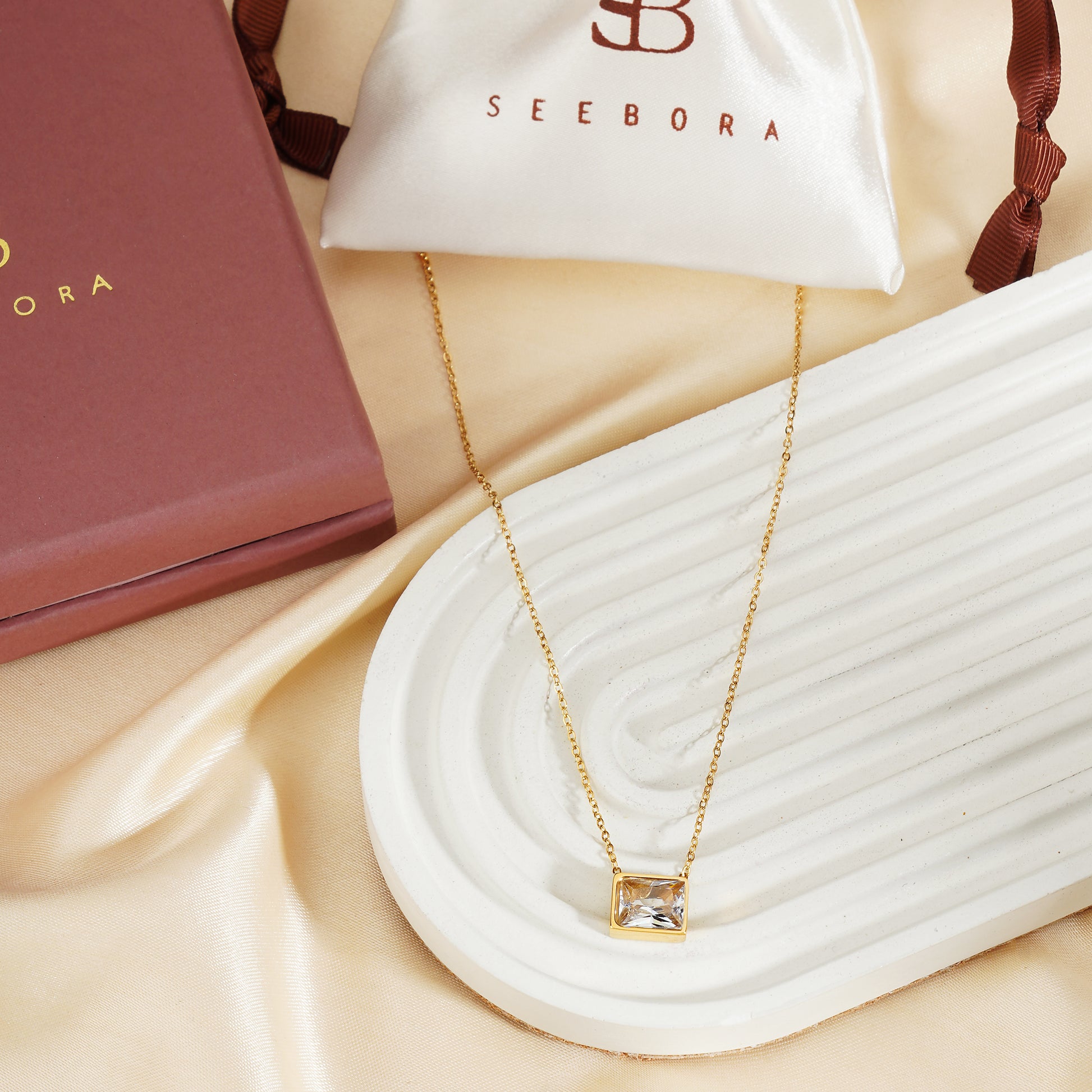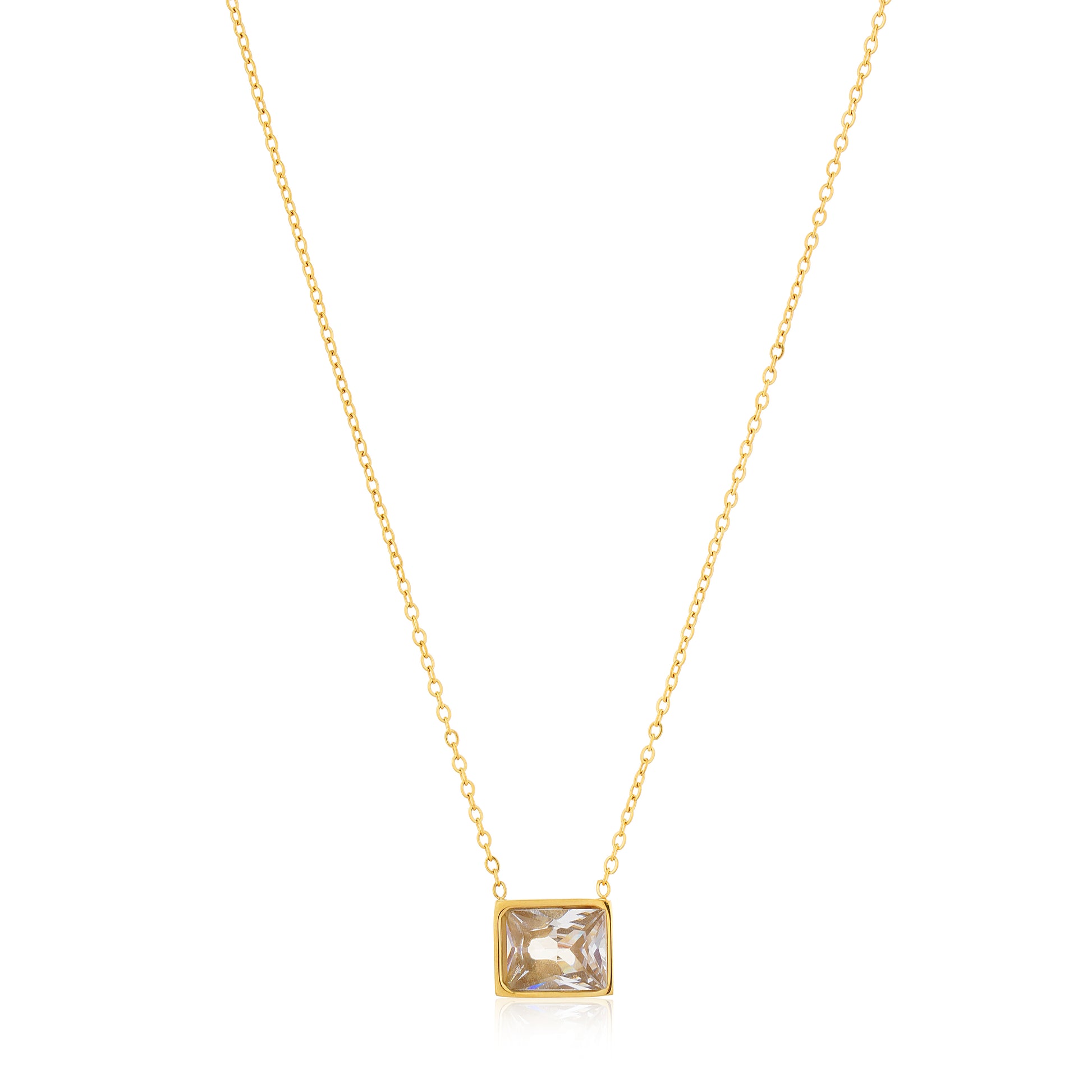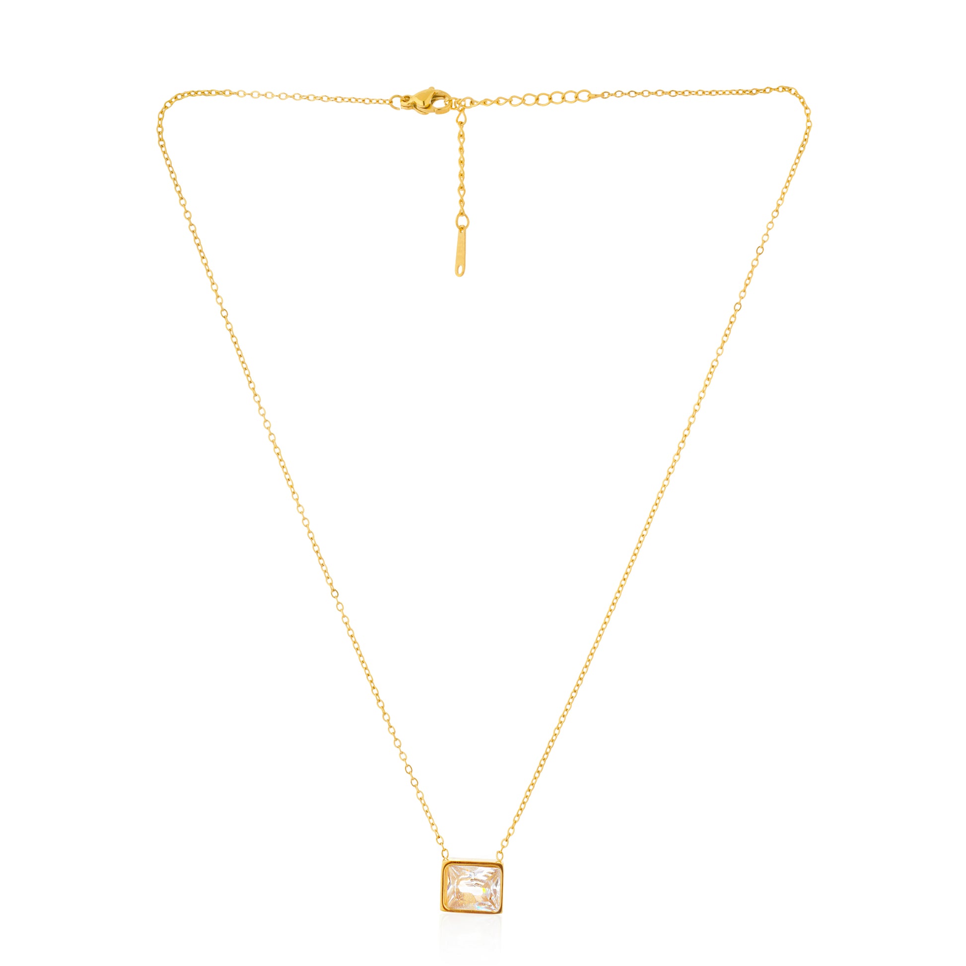 Indulge in the luxurious beauty of the stainless steel and 24K gold plated white magic stone necklace, accented with sparkling cubic zirconia. Elevate your style with this elegant and sophisticated piece.